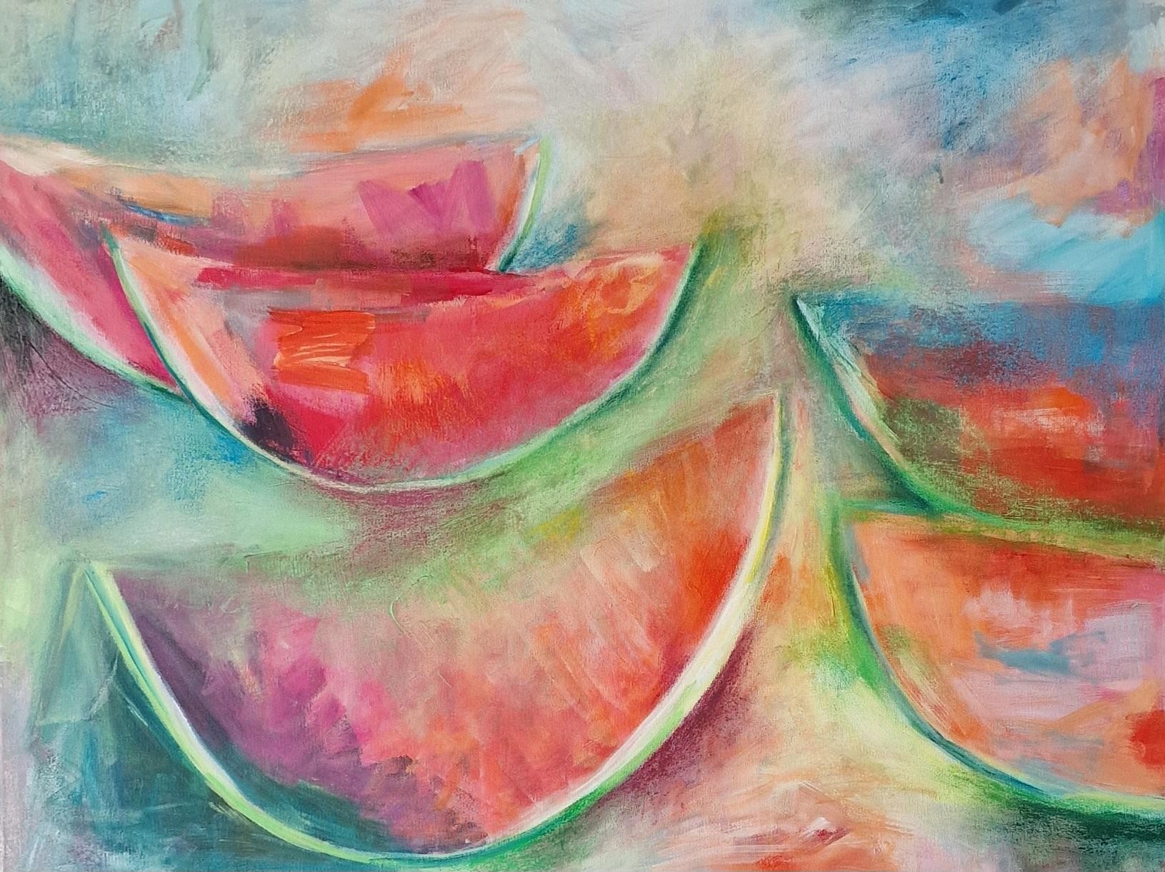 Eine leere Leinwand vor mir, völlig losgelöst vom Alltag mit einem inneren Lächeln und Liebe im Herzen, fange ich an zu malen.