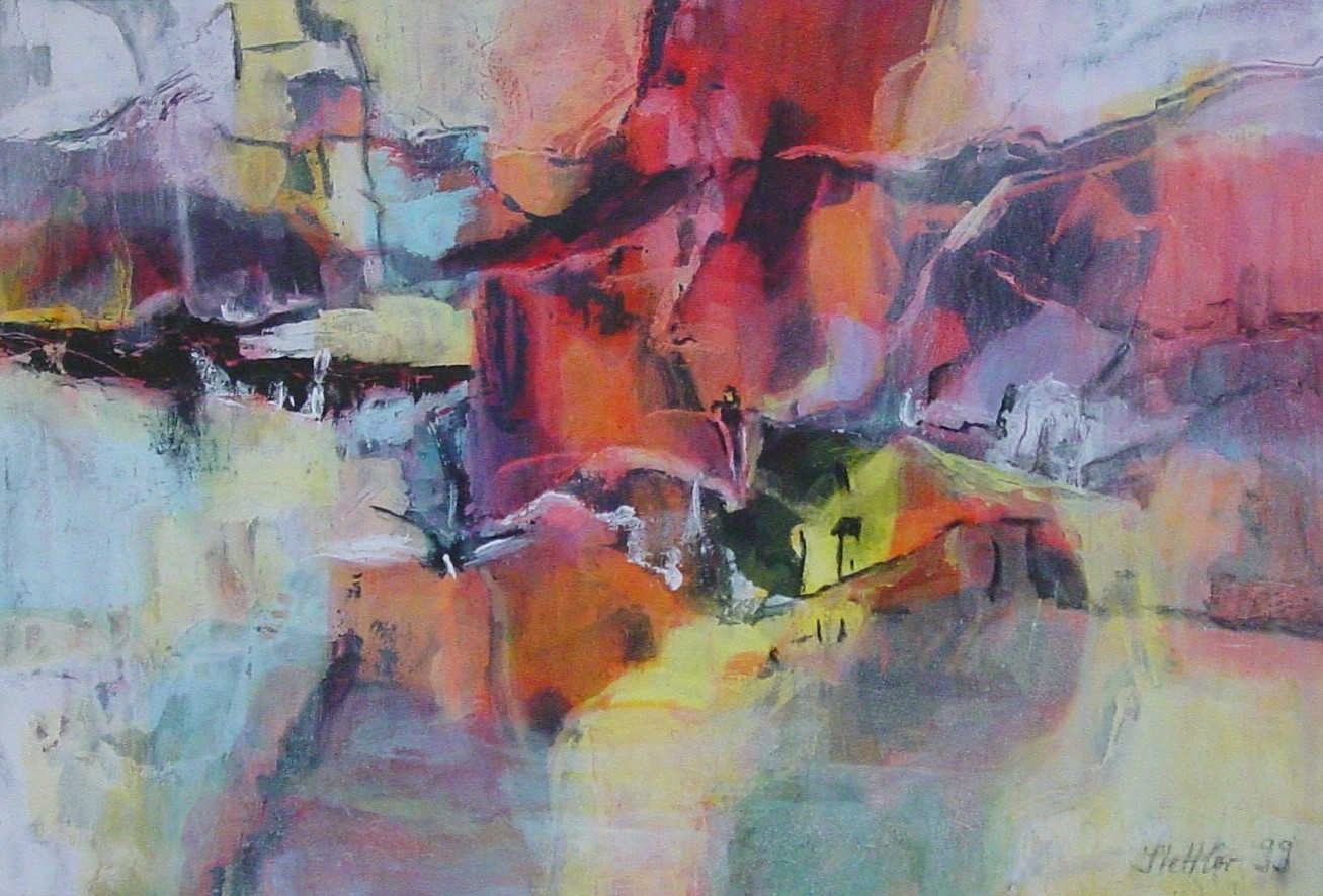 Farbkompositionen entstehen intuitiv und frei ohne Vorlage in Farbschichten, hervorgerufen mit einer speziellen Maltechnik. Beim Betrachten entdecke ich dann neue Formen, die betont oder übermalt und transformiert werden. Dazu brauche ich Mut, um so eine neue Dimension zu erreichen.