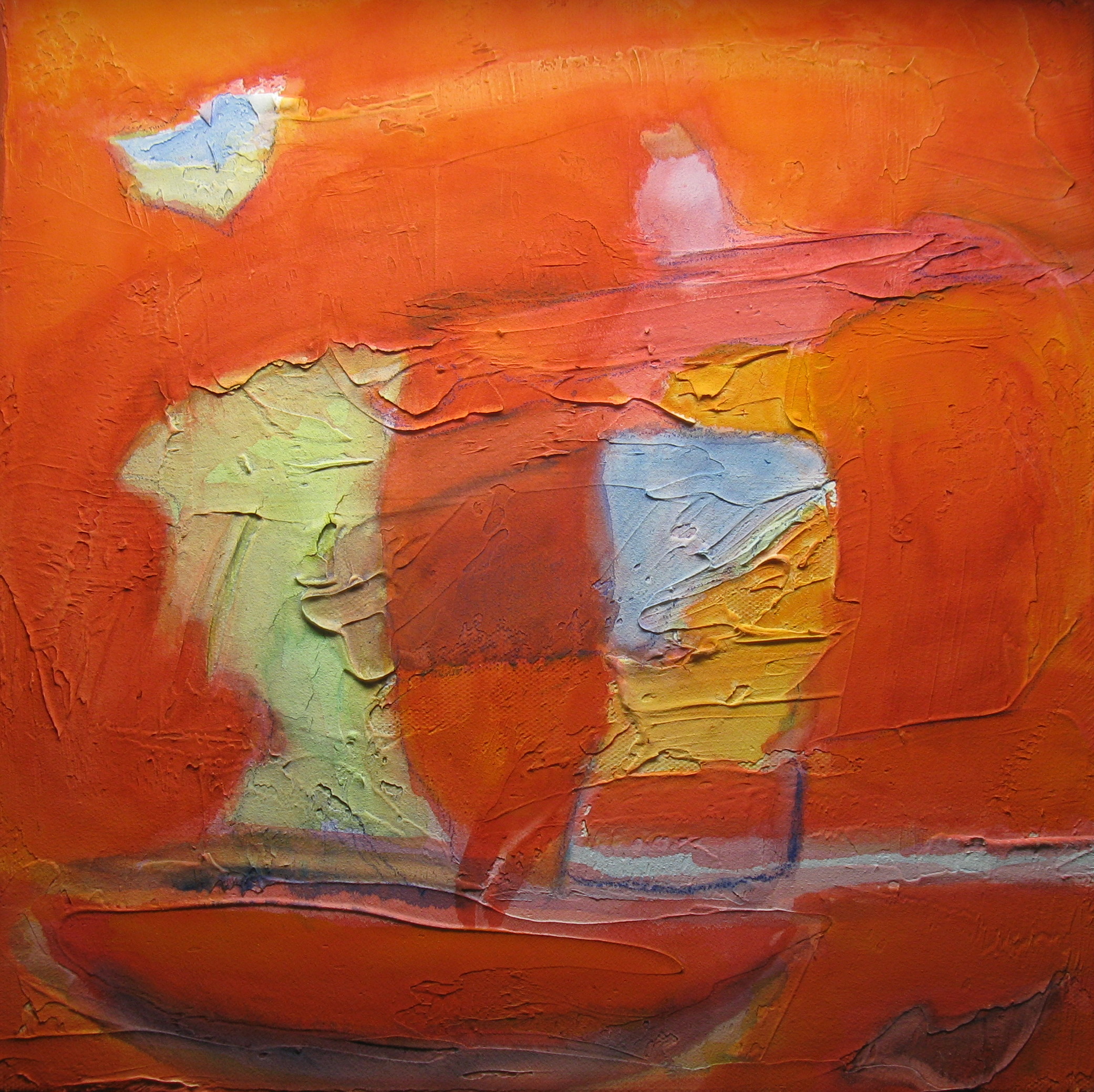 Farbkompositionen entstehen intuitiv und frei ohne Vorlage in Farbschichten, hervorgerufen mit einer speziellen Maltechnik. Beim Betrachten entdecke ich dann neue Formen, die betont oder übermalt und transformiert werden. Dazu brauche ich Mut, um so eine neue Dimension zu erreichen.