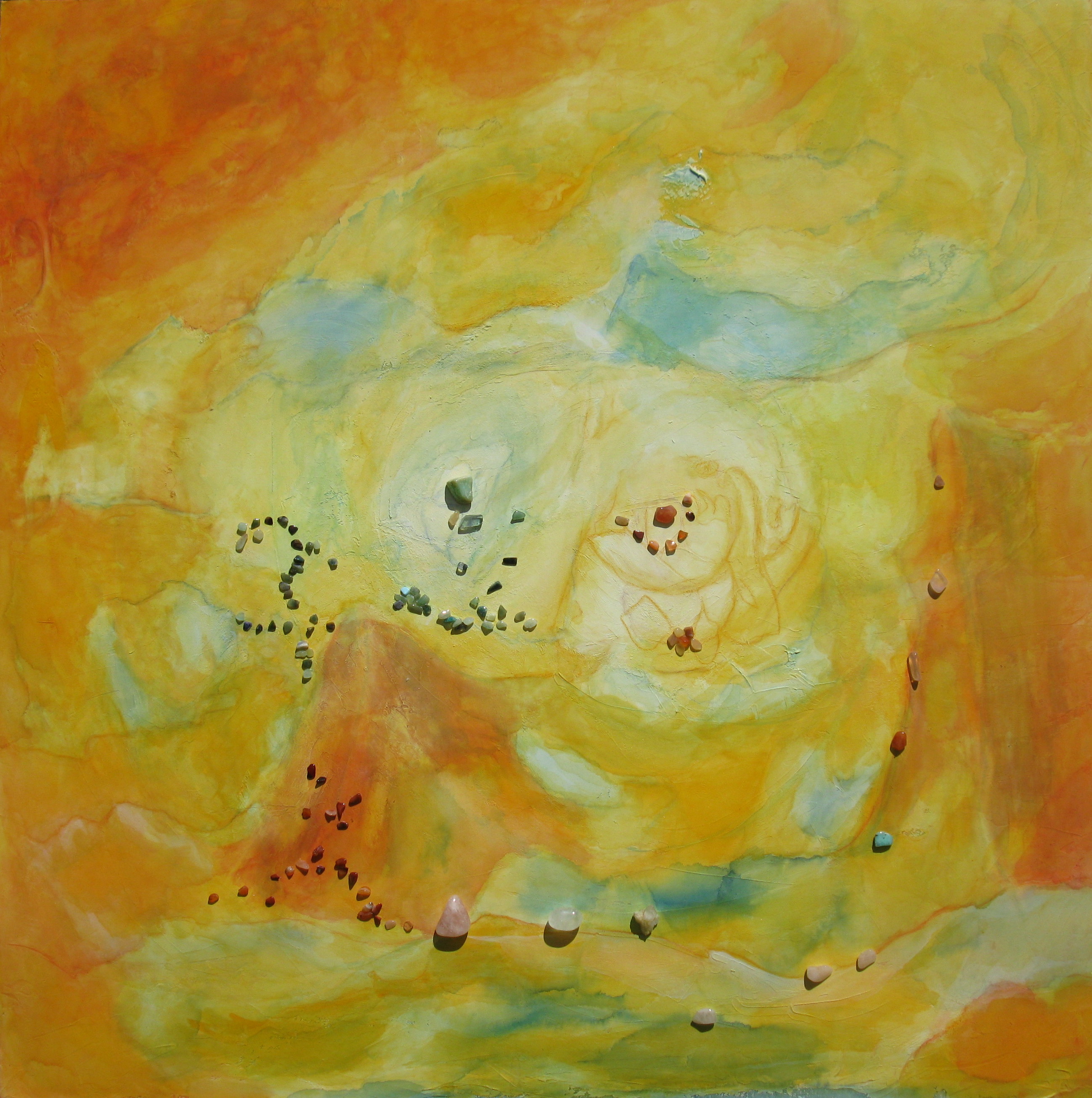 Mischtechnik: Eingearbeitet A=Asche, D=Dekomaterialien, H=Holz, K=Kieselsteine, M=Meersand, S=Schmucksteine