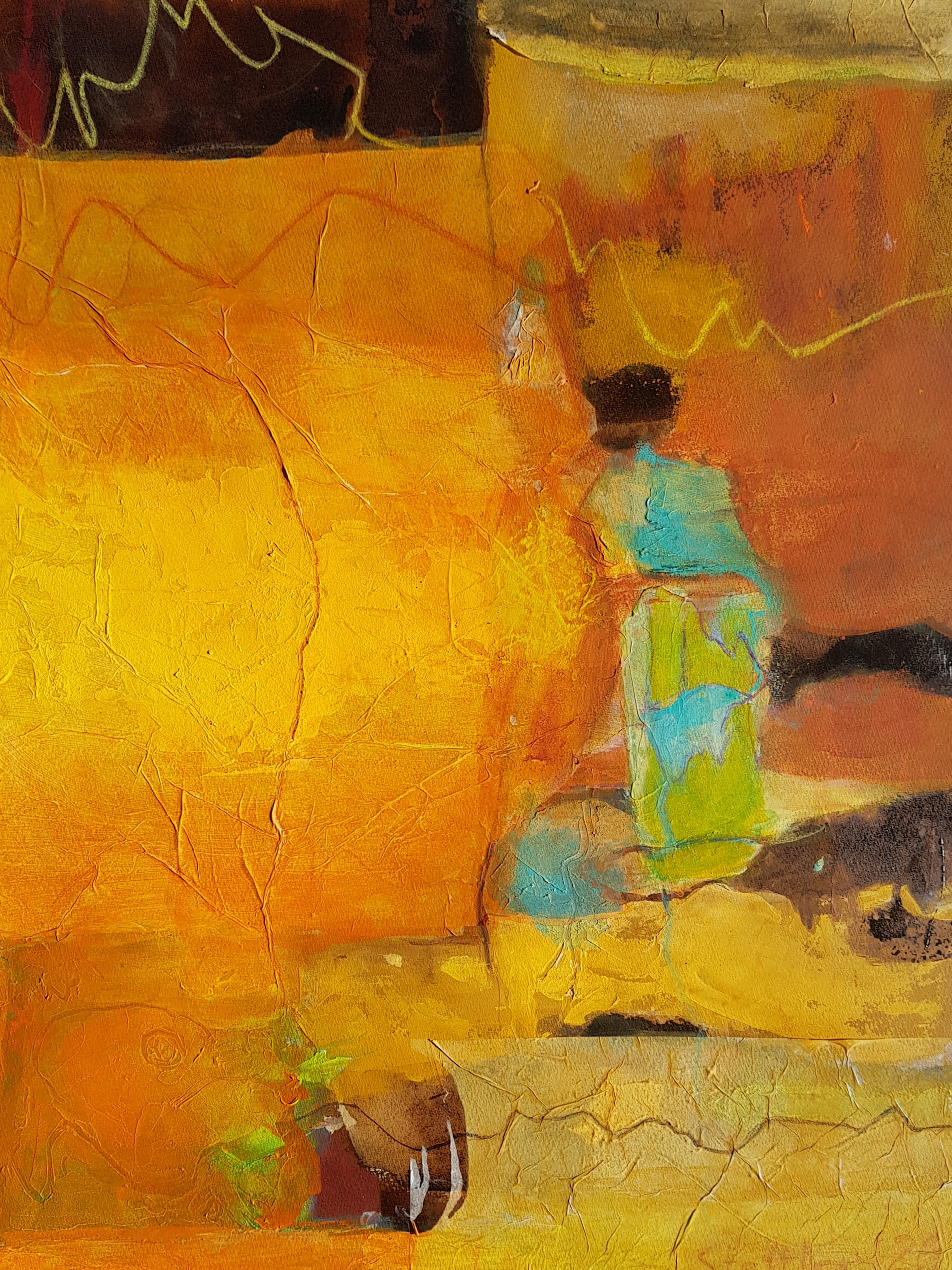 Farbkompositionen entstehen intuitiv und frei ohne Vorlage in Farbschichten, hervorgerufen mit einer speziellen Maltechnik. Beim Betrachten entdecke ich dann neue Formen, die betont oder übermalt und transformiert werden. Dazu brauche ich Mut, um so eine neue Dimension zu erreichen.