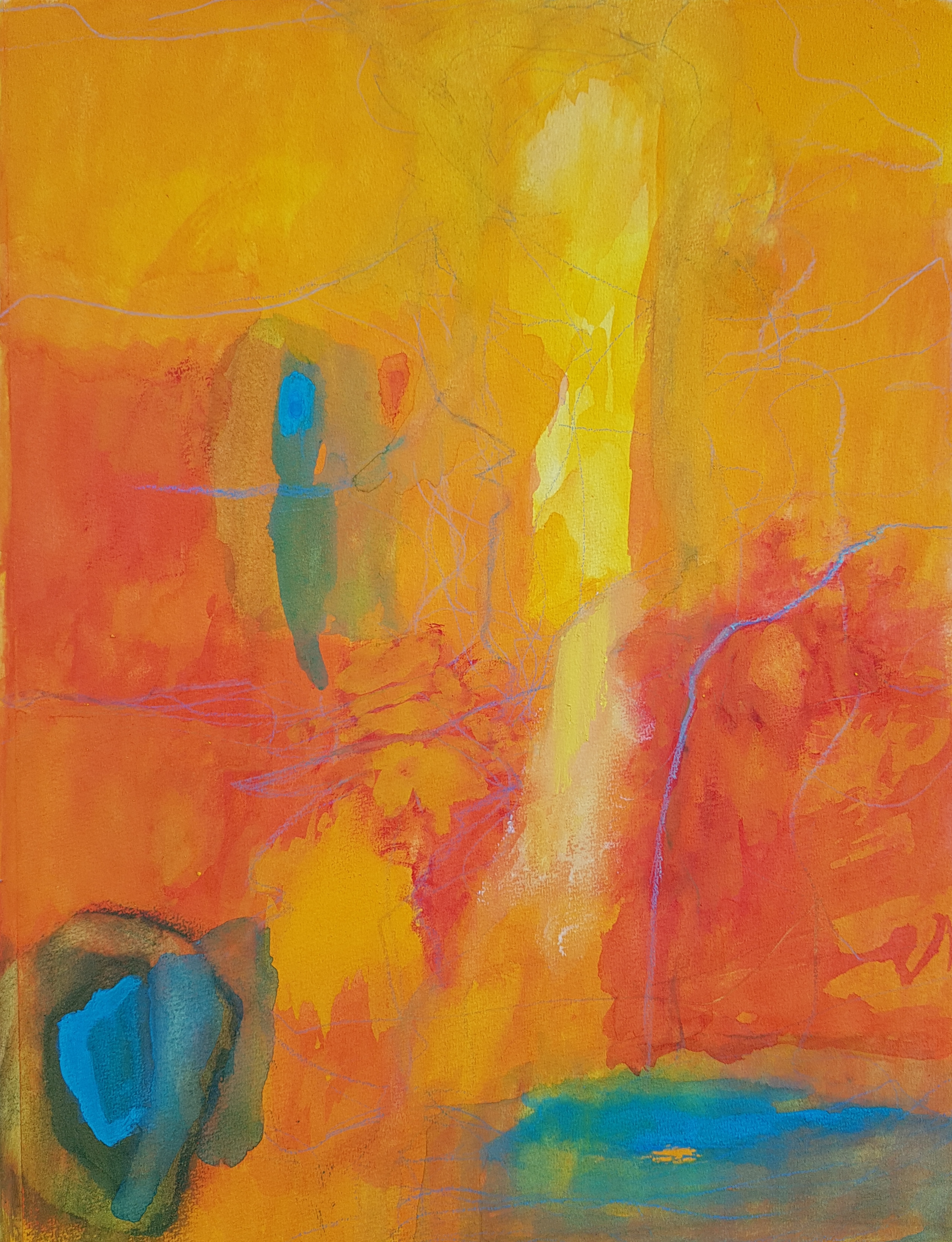Farbkompositionen entstehen intuitiv und frei ohne Vorlage in Farbschichten, hervorgerufen mit einer speziellen Maltechnik. Beim Betrachten entdecke ich dann neue Formen, die betont oder übermalt und transformiert werden. Dazu brauche ich Mut, um so eine neue Dimension zu erreichen.