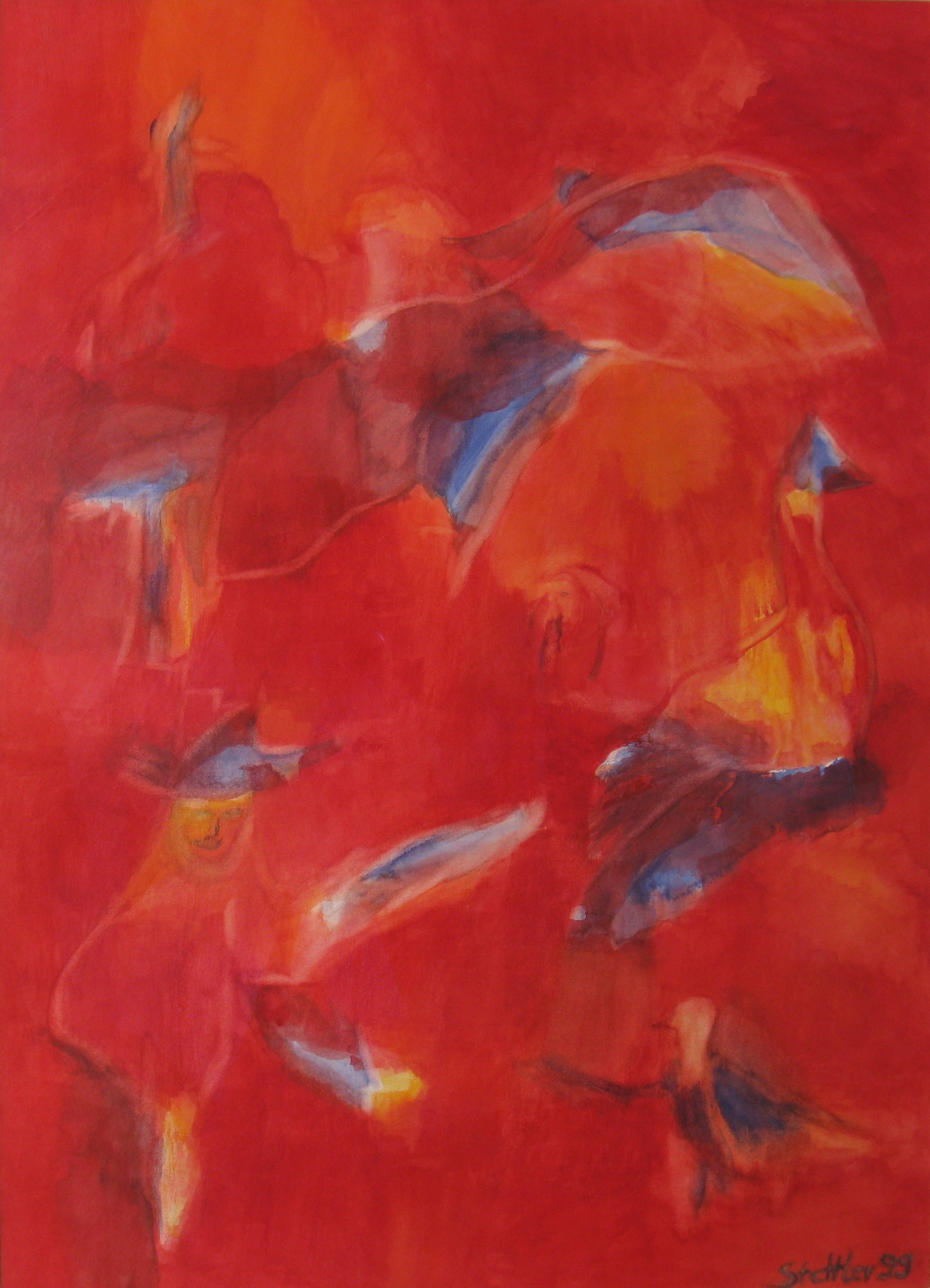 Farbkompositionen entstehen intuitiv und frei ohne Vorlage in Farbschichten, hervorgerufen mit einer speziellen Maltechnik. Beim Betrachten entdecke ich dann neue Formen, die betont oder übermalt und transformiert werden. Dazu brauche ich Mut, um so eine neue Dimension zu erreichen.