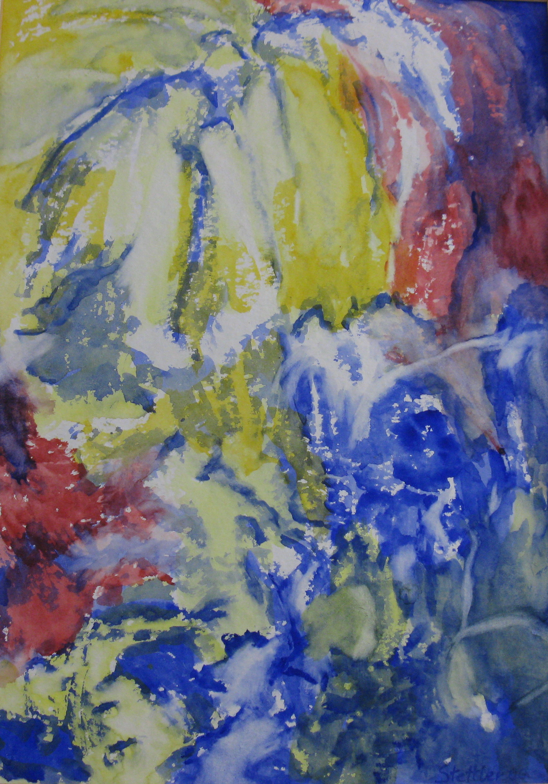 Farbkompositionen entstehen intuitiv und frei ohne Vorlage in Farbschichten, hervorgerufen mit einer speziellen Maltechnik. Beim Betrachten entdecke ich dann neue Formen, die betont oder übermalt und transformiert werden. Dazu brauche ich Mut, um so eine neue Dimension zu erreichen.