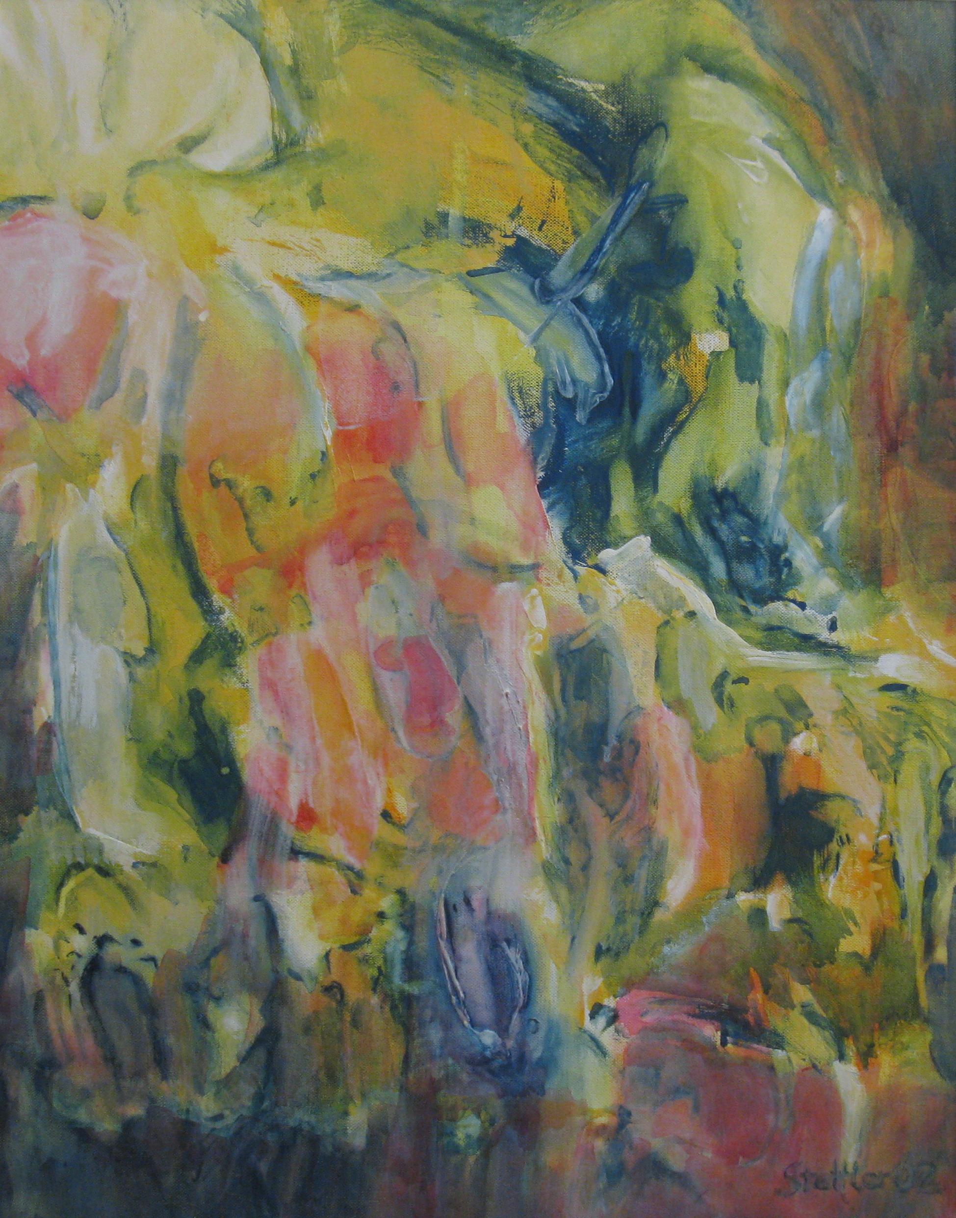 Farbkompositionen entstehen intuitiv und frei ohne Vorlage in Farbschichten, hervorgerufen mit einer speziellen Maltechnik. Beim Betrachten entdecke ich dann neue Formen, die betont oder übermalt und transformiert werden. Dazu brauche ich Mut, um so eine neue Dimension zu erreichen.
