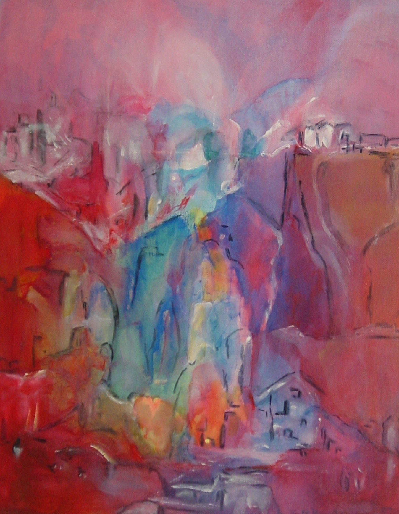 Farbkompositionen entstehen intuitiv und frei ohne Vorlage in Farbschichten, hervorgerufen mit einer speziellen Maltechnik. Beim Betrachten entdecke ich dann neue Formen, die betont oder übermalt und transformiert werden. Dazu brauche ich Mut, um so eine neue Dimension zu erreichen.