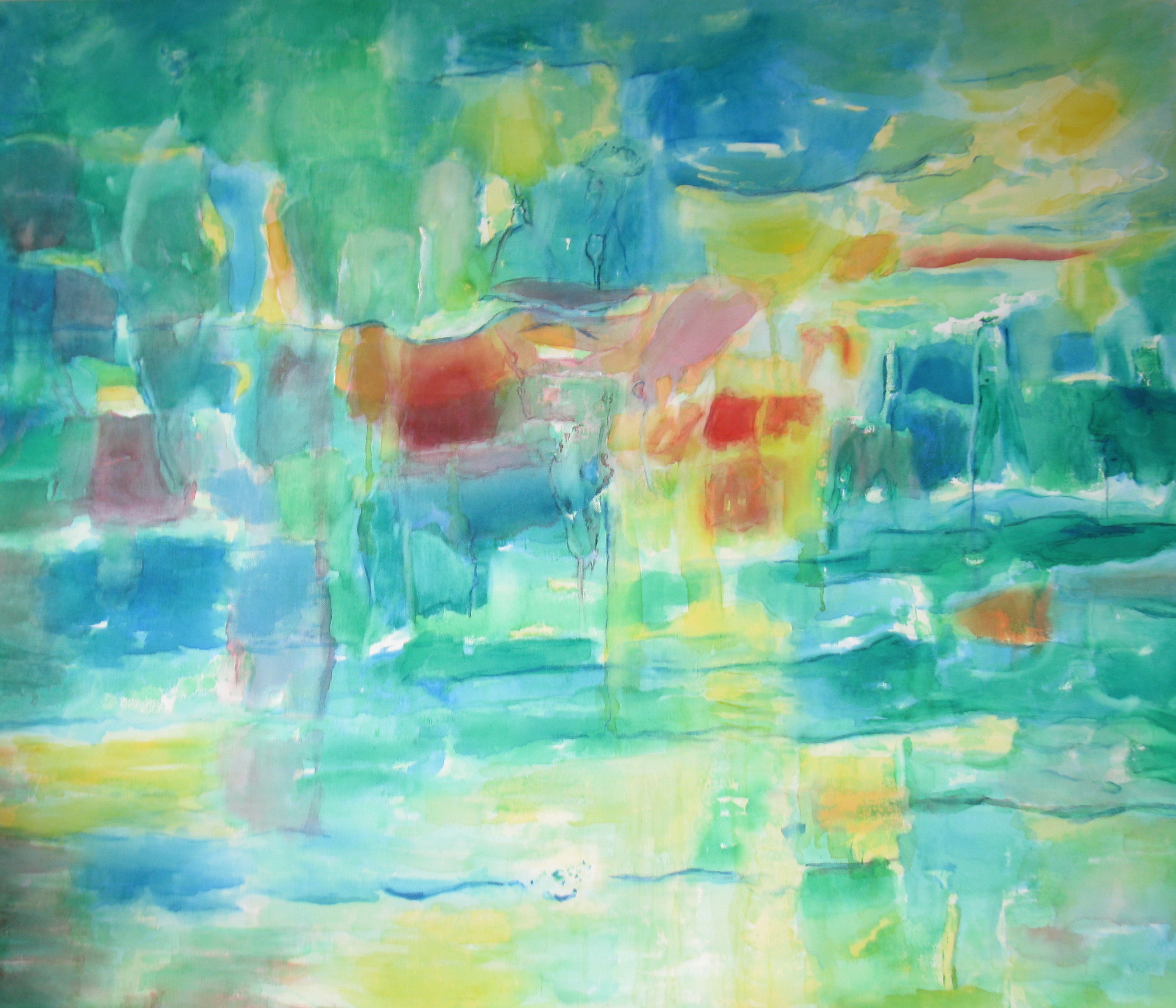 Farbkompositionen entstehen intuitiv und frei ohne Vorlage in Farbschichten, hervorgerufen mit einer speziellen Maltechnik. Beim Betrachten entdecke ich dann neue Formen, die betont oder übermalt und transformiert werden. Dazu brauche ich Mut, um so eine neue Dimension zu erreichen.