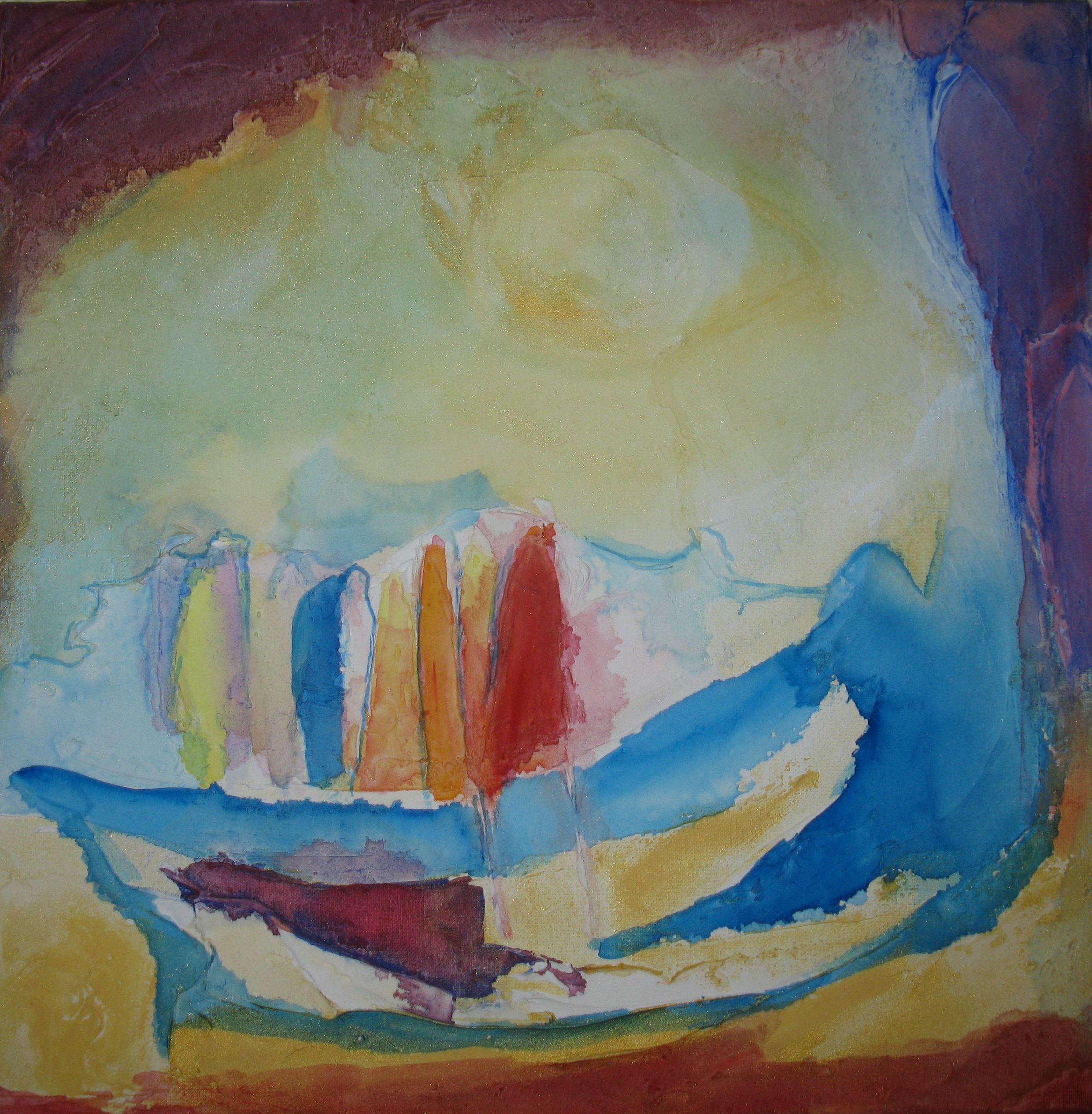 Farbkompositionen entstehen intuitiv und frei ohne Vorlage in Farbschichten, hervorgerufen mit einer speziellen Maltechnik. Beim Betrachten entdecke ich dann neue Formen, die betont oder übermalt und transformiert werden. Dazu brauche ich Mut, um so eine neue Dimension zu erreichen.
