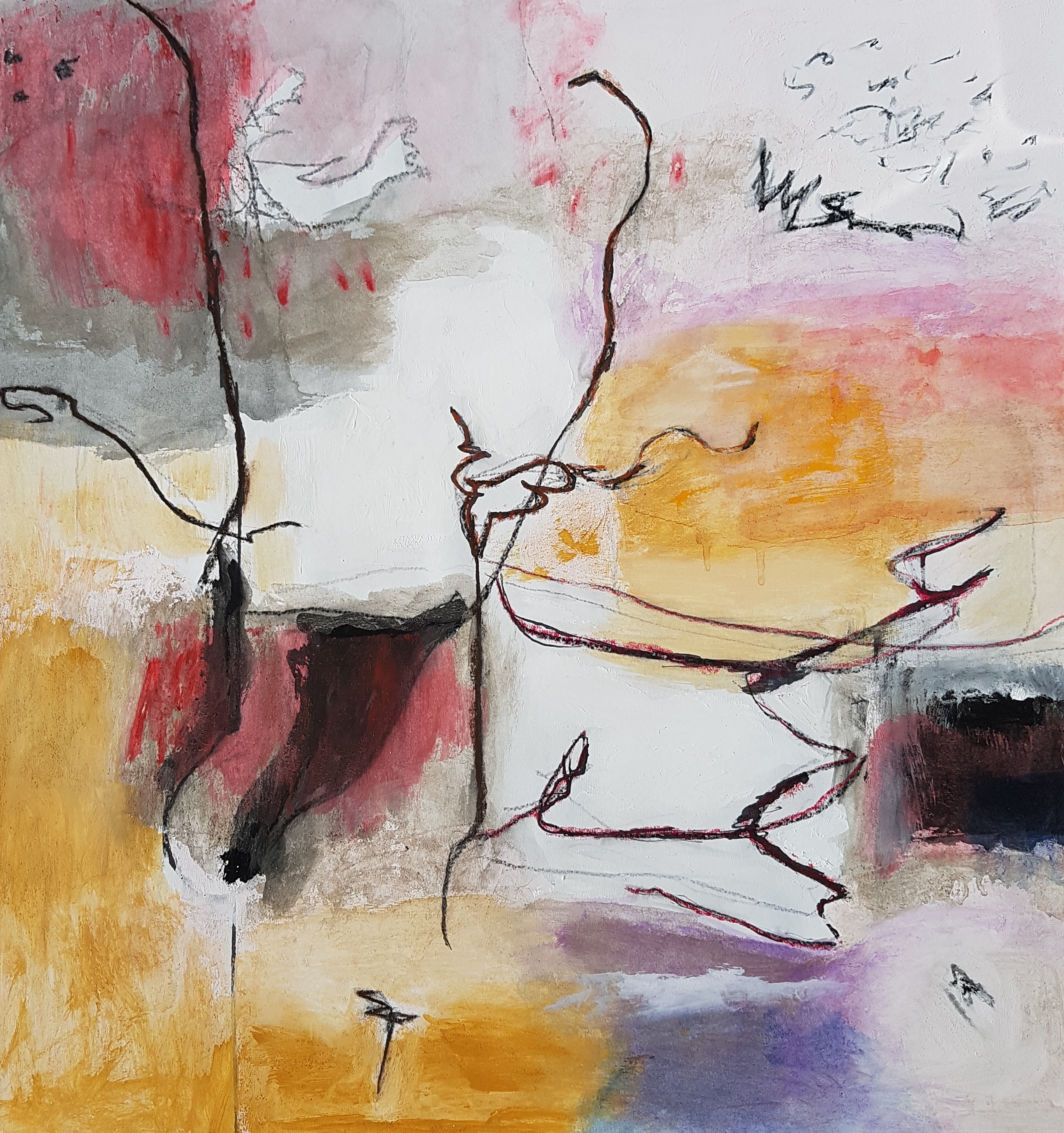 Farbkompositionen entstehen intuitiv und frei ohne Vorlage in Farbschichten, hervorgerufen mit einer speziellen Maltechnik. Beim Betrachten entdecke ich dann neue Formen, die betont oder übermalt und transformiert werden. Dazu brauche ich Mut, um so eine neue Dimension zu erreichen.