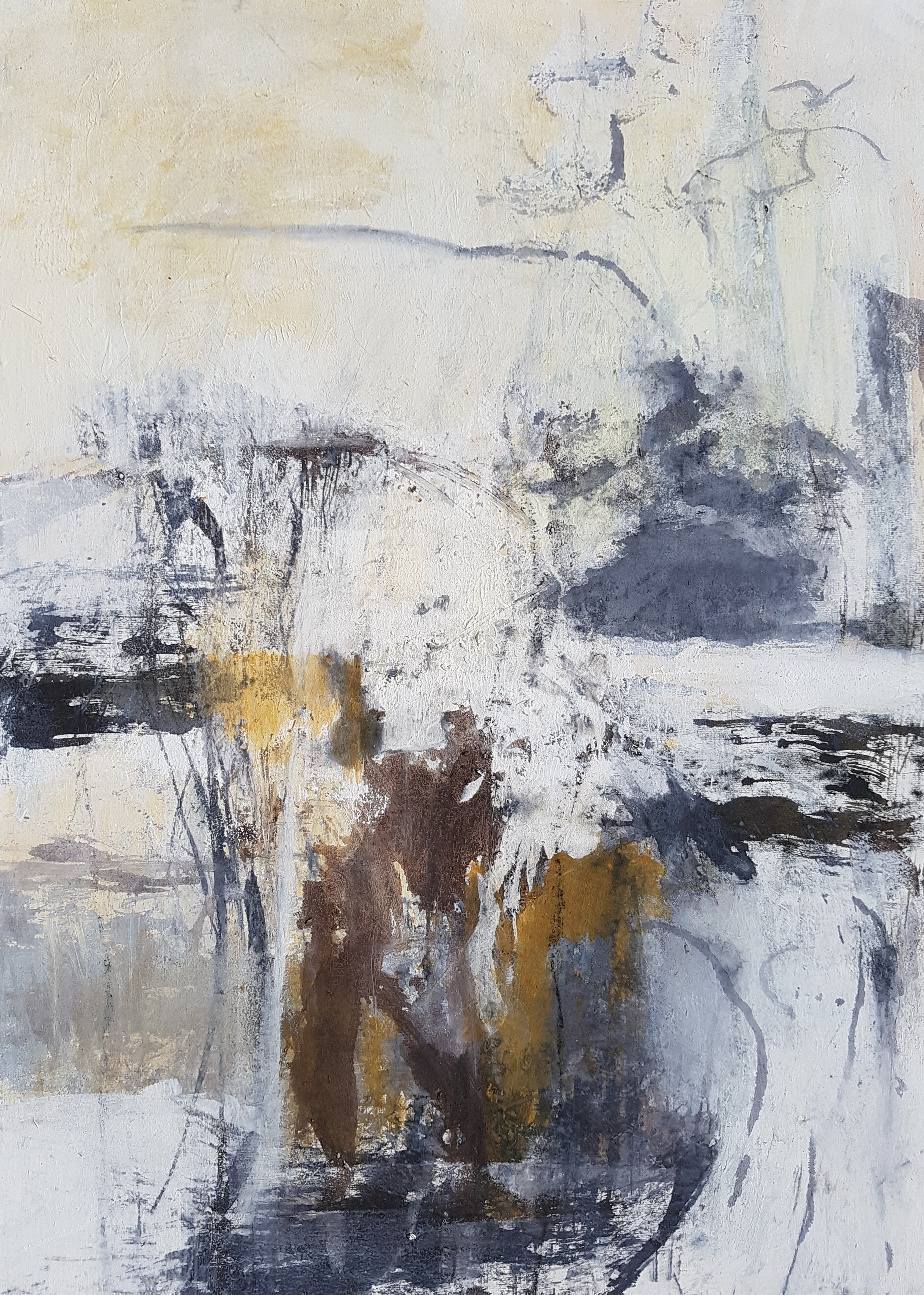 Farbkompositionen entstehen intuitiv und frei ohne Vorlage in Farbschichten, hervorgerufen mit einer speziellen Maltechnik. Beim Betrachten entdecke ich dann neue Formen, die betont oder übermalt und transformiert werden. Dazu brauche ich Mut, um so eine neue Dimension zu erreichen.