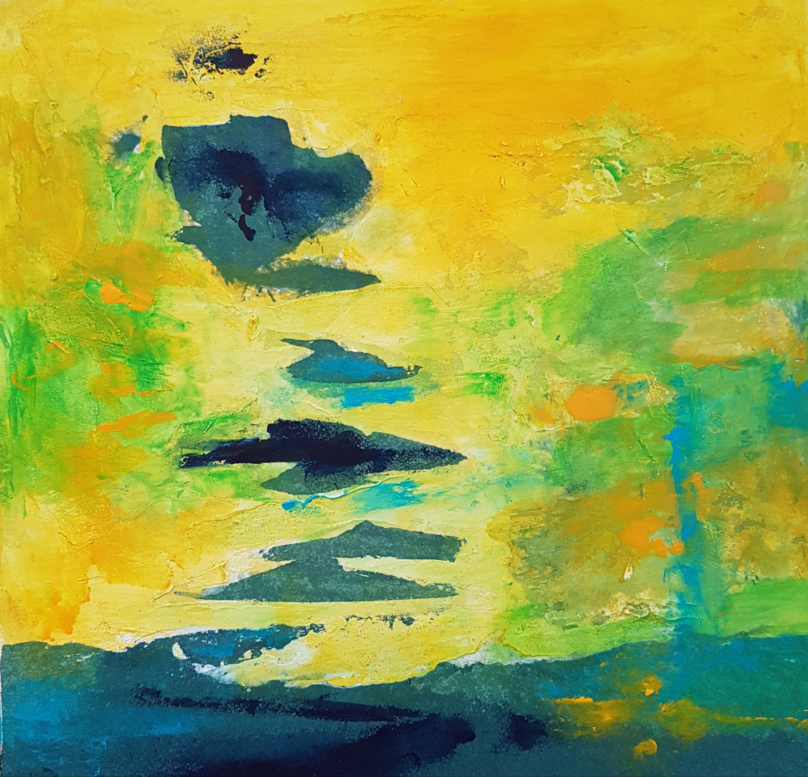 Farbkompositionen entstehen intuitiv und frei ohne Vorlage in Farbschichten, hervorgerufen mit einer speziellen Maltechnik. Beim Betrachten entdecke ich dann neue Formen, die betont oder übermalt und transformiert werden. Dazu brauche ich Mut, um so eine neue Dimension zu erreichen.